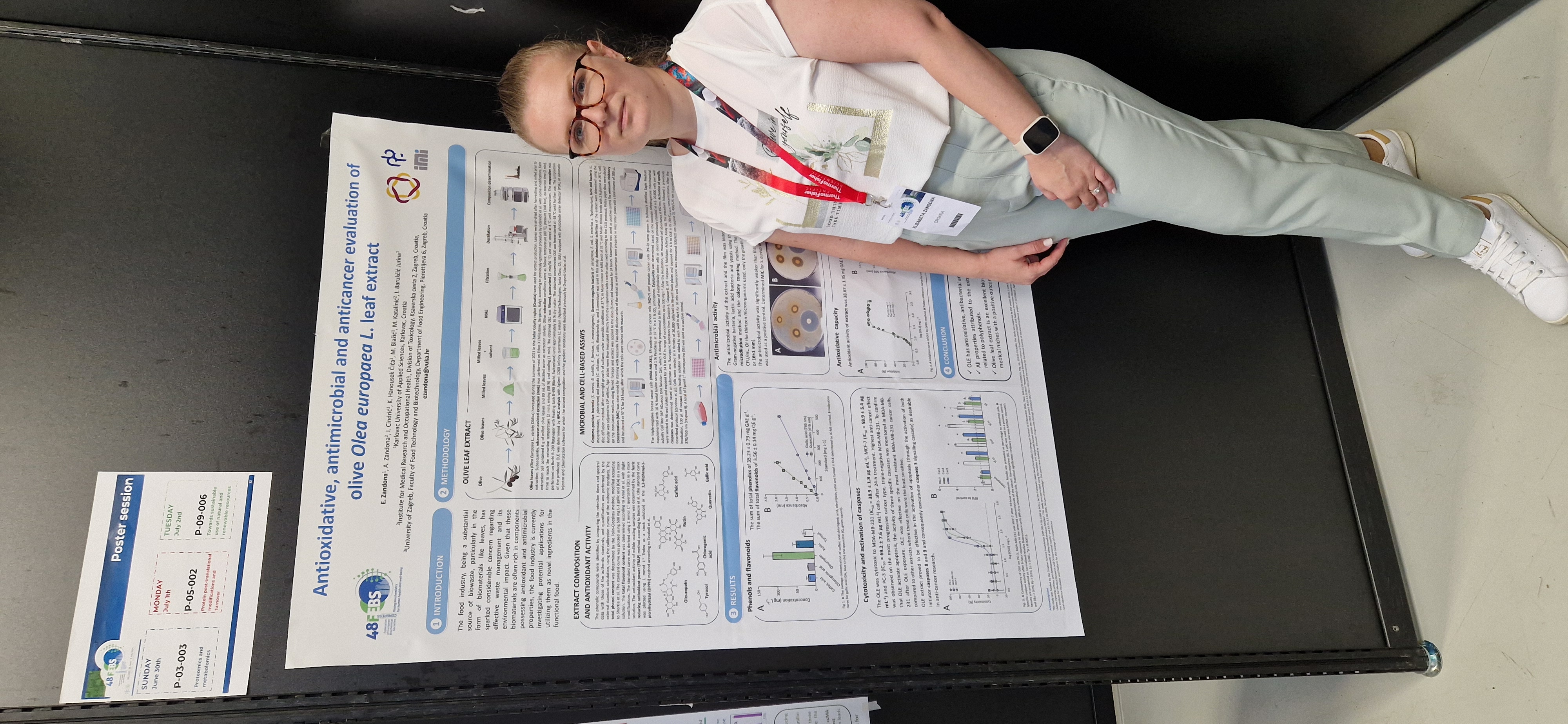 Elizabeta Zandona, mag. ing. bioproc. prezentirala je rad naslova "Antioxidative, antimicrobial and anticancer evaluation of olive (Olea europaea L.) leaf extract", koji istražuje antioksidativna, antimikrobna i antikancerogena svojstva ekstrakta lista masline. Rezultati ovog istraživanja doprinose boljem razumijevanju potencijala prirodnih bioaktivnih spojeva i njihovoj mogućoj primjeni u razvoju inovativnih prehrambenih i farmaceutskih proizvoda.