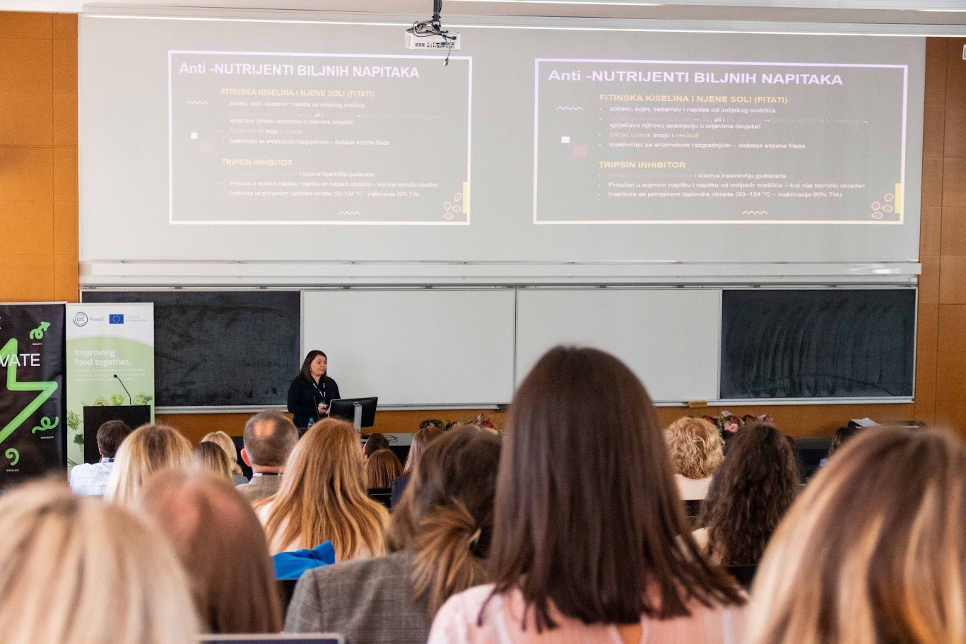 Posebno se istaknulo predavanje suradnice naše članice istraživačkog tima s Prehrambeno-biotehnološkog fakulteta, dr. sc. Katarine Lisak Jakopović, na temu „Prehrambena vrijednost biljnih alternativa i analoga mliječnih proizvoda – trenutno stanje i buduća perspektiva“, u kojem je predstavljena analiza nutritivnih svojstava biljnih proizvoda, izazovi njihove standardizacije te očekivani razvoj i tržišni trendovi u ovom dinamično rastućem segmentu prehrane.