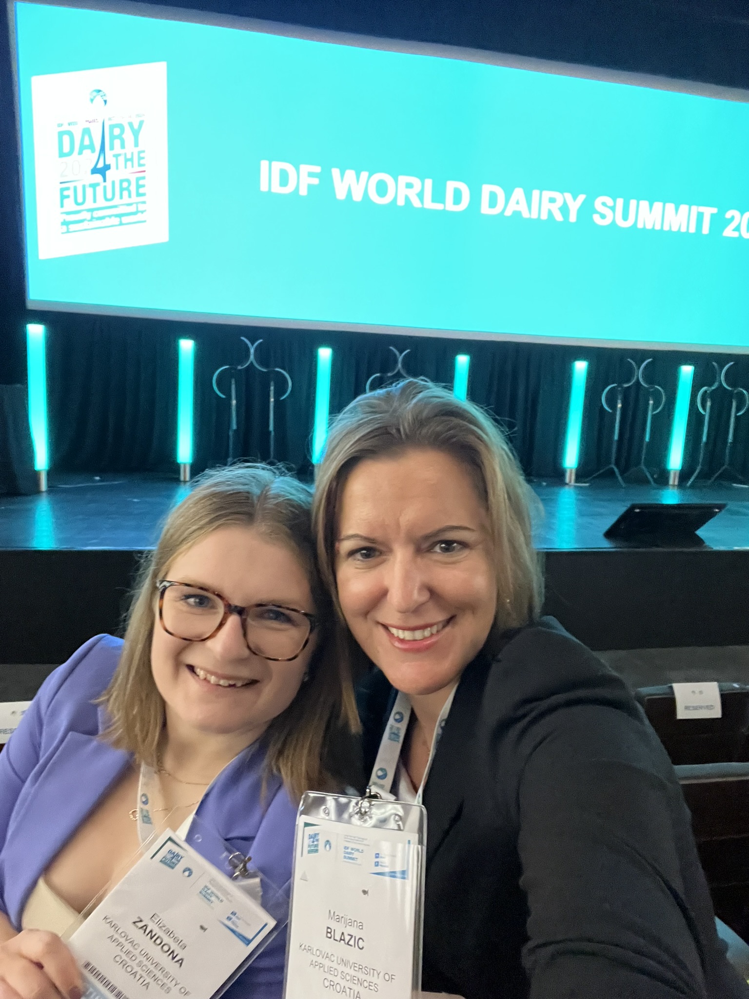dr. sc. Marijana Blažić, prof. struč. stud. i Elizabeta Zandona, mag. ing. bioproc., pred. sudjelovale su od 15. do 18. listopada 2024. u Parizu (Francuska) na prestižnom međunarodnom skupu IDF World Dairy Summit 2024, koji organizira International Dairy Federation – IDF u suradnji s vodećim nacionalnim i međunarodnim institucijama iz područja mliječne industrije. Summit okuplja vodeće znanstvenike, stručnjake, proizvođače i donositelje odluka s ciljem razmjene znanja, predstavljanja najnovijih istraživanja i rasprave o globalnim izazovima i trendovima u sektoru mlijeka i mliječnih proizvoda.