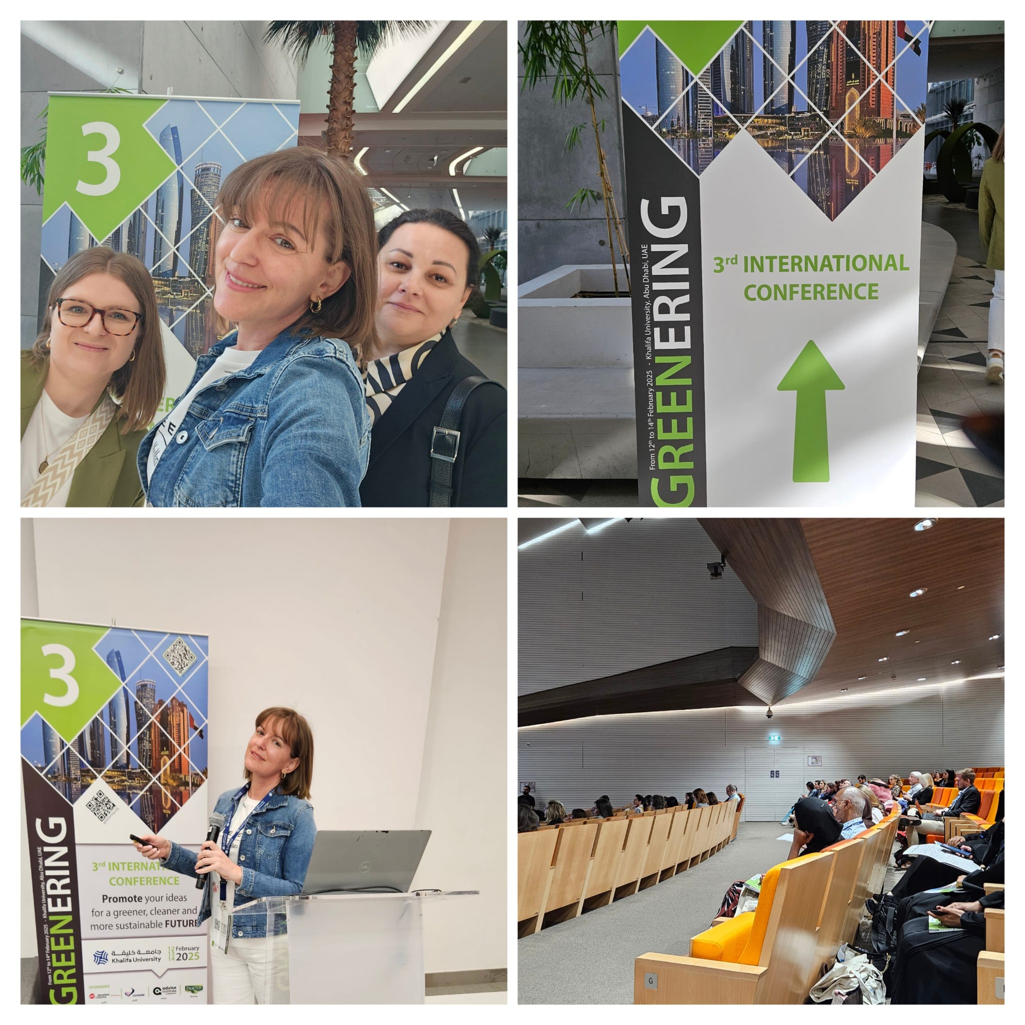 Članice projektnog tima SIROFONIJA, dr. sc. Ines Cindrić, dr. sc. Marijana Blažić i Elizabeta Zandona, mag. ing. bioproc., sudjelovale su od 12. do 14. veljače 2025. na međunarodnoj znanstvenoj konferenciji 3rd Greenering International Conference na Sveučilištu Khalifa u Abu Dhabiju (Ujedinjeni Arapski Emirati). Skup je okupio znanstvenike, istraživače, predstavnike industrije i donositelje odluka s ciljem promicanja održivih tehnologija, zelenih inovacija i kružnog gospodarstva s ciljem poticanja interdisciplinarnih suradnji u razvoju inovativnih rješenja za globalne okolišne i prehrambene izazove.